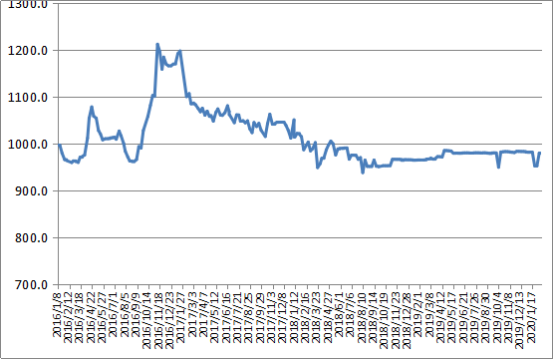 圖1 2016-2020年各周中國公路物流運價(jia) 指數