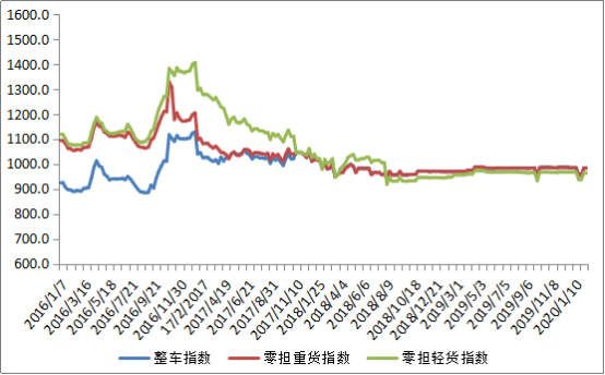 分車型看,各車型指數漲跌不一。其中,整車指數為(wei) 983.76點,比上周回落0.04%;零擔重貨指數為(wei) 983.39點,比上周回落0.03%;零擔輕貨指數為(wei) 964.03點,比上周回升0.01%。