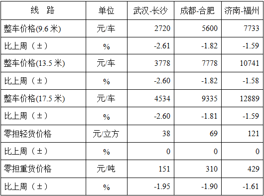 表1 本周部分線路平均價(jia) 格及環比情況對比