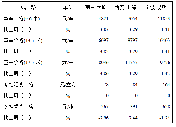 表1 本周部分線路平均價(jia) 格及環比情況對比