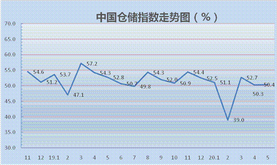 华体会登录界面與(yu) 中儲(chu) 發展股份有限公司聯合調查的中國倉(cang) 儲(chu) 指數,2020年5月份為(wei) 50.4%,較上月小幅回升0.1個(ge) 百分點,連續三個(ge) 月保持在榮枯線以上。