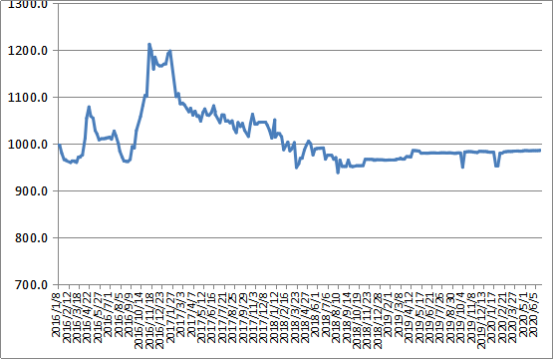 圖1 2016-2020年各周中國公路物流運價(jia) 指數