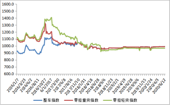 分車型看,各車型指數環比漲跌互現。其中,整車指數為(wei) 990.25點,比上周回落0.05%;零擔輕貨指數為(wei) 968點,比上周回升0.01;零擔重貨指數為(wei) 989.84點,比上周回落0.05%。