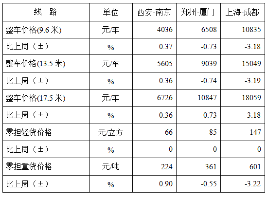 表1 本周部分線路平均價(jia) 格及環比情況對比