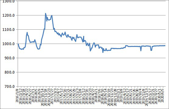 圖1 2016-2020年各周中國公路物流運價(jia) 指數