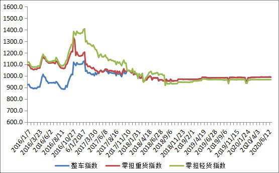分車型看,各車型指數環比漲跌互現。其中,整車指數為(wei) 989.35點,比上周回落0.09%;零擔輕貨指數為(wei) 968.12點,比上周回升0.01%;零擔重貨指數為(wei) 989.19點,比上周回落0.07%。