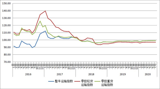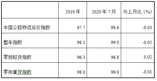 表1 2020年7月中國公路物流運價(jia) 指數表