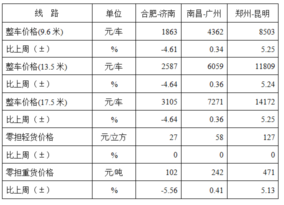表1 本周部分線路平均價(jia) 格及環比情況對比