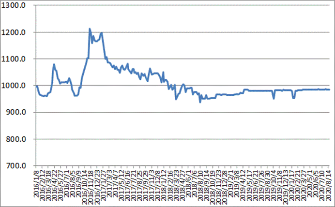 圖1 2016-2020年各周中國公路物流運價(jia) 指數