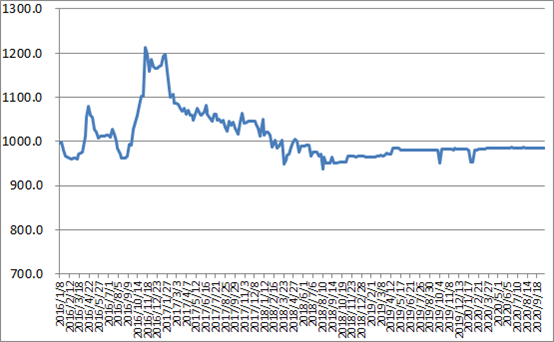 圖1 2016-2020年各周中國公路物流運價(jia) 指數