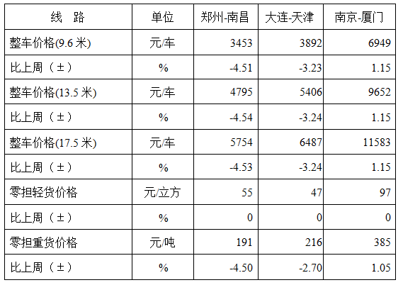 表1 本周部分線路平均價(jia) 格及環比情況對比