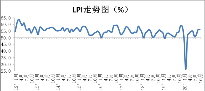 华体会登录界面發布的2020年10月份中國物流業(ye) 景氣指數為(wei) 56.3%,較上月回升0.2個(ge) 百分點;中國倉(cang) 儲(chu) 指數為(wei) 52.8%,較上月回升2個(ge) 百分點。