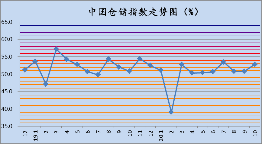 华体会登录界面與(yu) 中儲(chu) 發展股份有限公司聯合調查的中國倉(cang) 儲(chu) 指數,2020年10月份為(wei) 52.8%,較上月上升2.0個(ge) 百分點。各分項指數中,延伸業(ye) 務量指數、業(ye) 務活動預期指數較上月有所回落,收費價(jia) 格指數與(yu) 上月持平,其餘(yu) 指數均有不同程度的回升。
