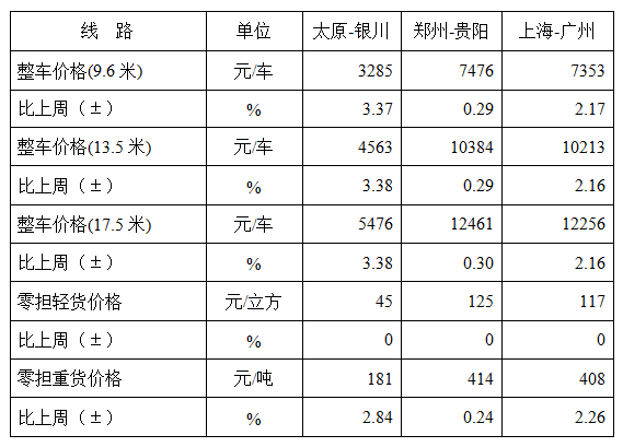 表1 本周部分線路平均價(jia) 格及環比情況對比