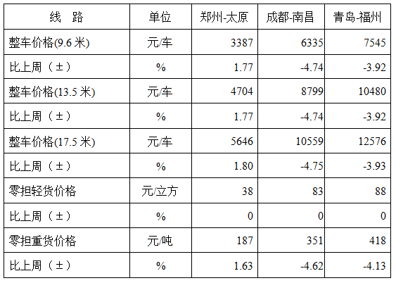 表1 本周部分線路平均價(jia) 格及環比情況對比