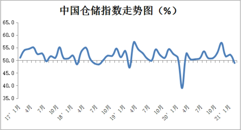华体会登录界面發布的2021年2月份中國物流業(ye) 景氣指數為(wei) 49.8%,較上月回落4.6個(ge) 百分點;中國倉(cang) 儲(chu) 指數為(wei) 48.9%,較上月回落3.3個(ge) 百分點。