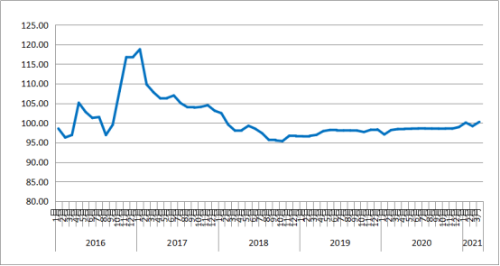 圖1 2016年以來各月中國公路物流運價(jia) 指數