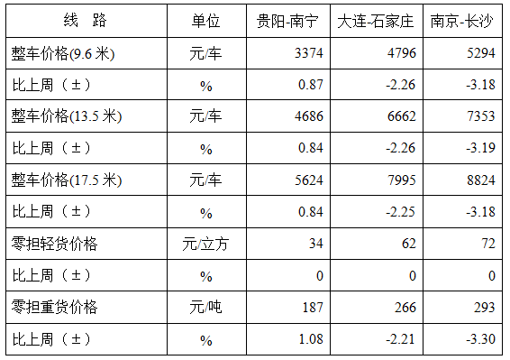 表1 本周部分線路平均價(jia) 格及環比情況對比