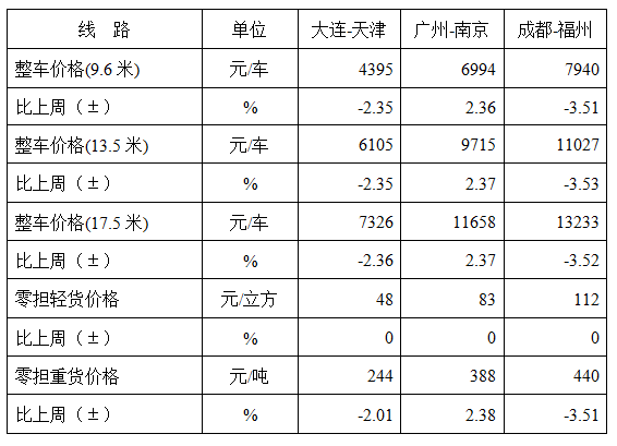 表1 本周部分線路平均價(jia) 格及環比情況對比