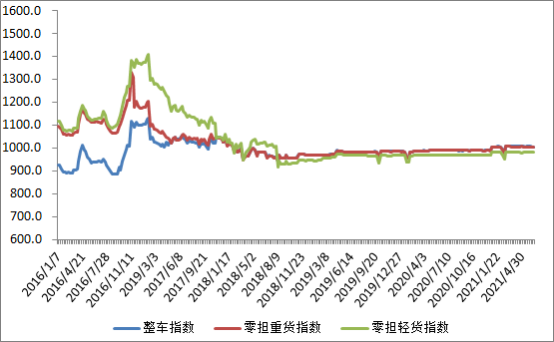 分車型看,各車型指數環比漲跌互現。其中,整車指數為(wei) 1005.95點,比上周回升0.09%;零擔輕貨指數為(wei) 981.23點,與(yu) 上周基本持平;零擔重貨指數為(wei) 1005.32點,比上周回升0.08%。