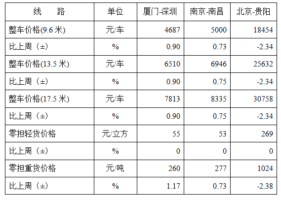 表1 本周部分線路平均價(jia) 格及環比情況對比