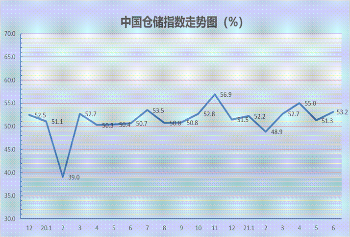 华体会登录界面與(yu) 中儲(chu) 發展股份有限公司聯合調查的中國倉(cang) 儲(chu) 指數,2021年6月份為(wei) 53.2%,較上月回升1.9個(ge) 百分點。各分項指數中,新訂單指數、業(ye) 務活動預期指數較上月有所回落,延伸業(ye) 務量指數與(yu) 上月持平,其餘(yu) 指數均有不同程度的回升。