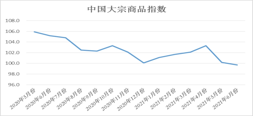 由华体会登录界面調查、發布的2021年6月份中國大宗商品指數(CBMI)為(wei) 99.7%,較上月回落0.5個(ge) 百分點,指數連續兩(liang) 個(ge) 月下跌,行業(ye) 景氣度明顯下降。各分項指數中,供應指數繼續上升,且增速加快,銷售指數繼續下挫,且跌至近十六個(ge) 月內(nei) 的最低,庫存指數止跌反彈。從(cong) 本月指數的變化情況來看,前期市場剛剛建立的供需相對均衡的局麵再度被打破,市場供大於(yu) 求的跡象進一步顯現,商品庫存開始積壓,市場淡季特征開始顯現。後期隨著夏季消費淡季的來臨(lin) ,預計市場下行壓力將加大,價(jia) 格仍有回落的空間。