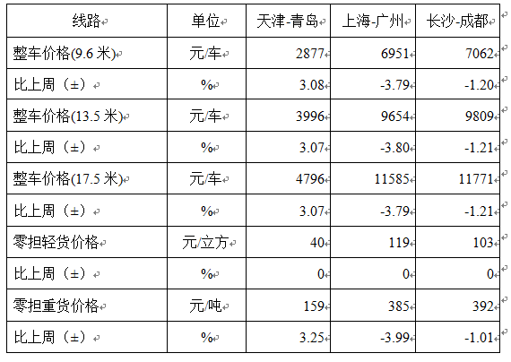 表1 本周部分線路平均價(jia) 格及環比情況對比