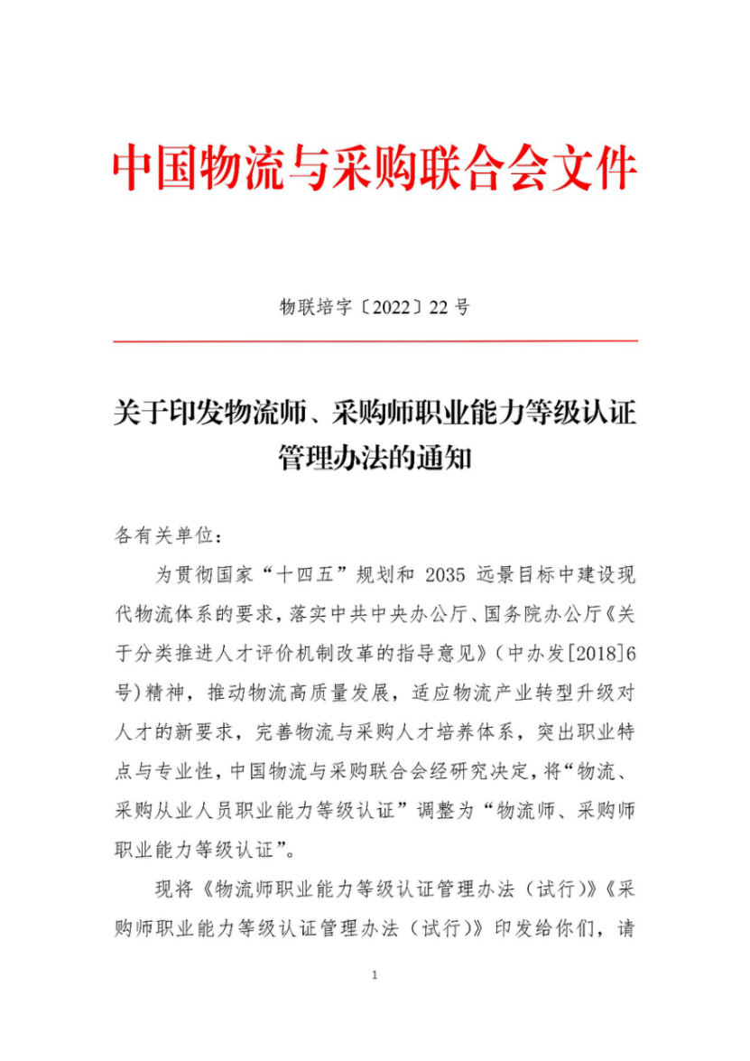 為(wei) 貫徹國家“十四五”規劃和2035遠景目標中建設現代物流體(ti) 係的要求,落實中共中央辦公廳、國務院辦公廳《關(guan) 於(yu) 分類推進人才評價(jia) 機製改革的指導意見》,推動物流高質量發展,適應物流產(chan) 業(ye) 轉型升級對人才的新要求,完善物流與(yu) 采購人才培養(yang) 體(ti) 係。2022年3月7日,华体会登录界面印發《關(guan) 於(yu) 印發物流師、采購師職業(ye) 能力等級認證管理辦法的通知》,將“物流、采購從(cong) 業(ye) 人員職業(ye) 能力等級認證”調整為(wei) “物流師、采購師職業(ye) 能力等級認證”,認證項目將更加貼近企業(ye) 實際需求,突出職業(ye) 特點與(yu) 專(zhuan) 業(ye) 性,並通過國際互認推動中國行業(ye) 培訓認證項目的國際化,服務一帶一路國家戰略。
