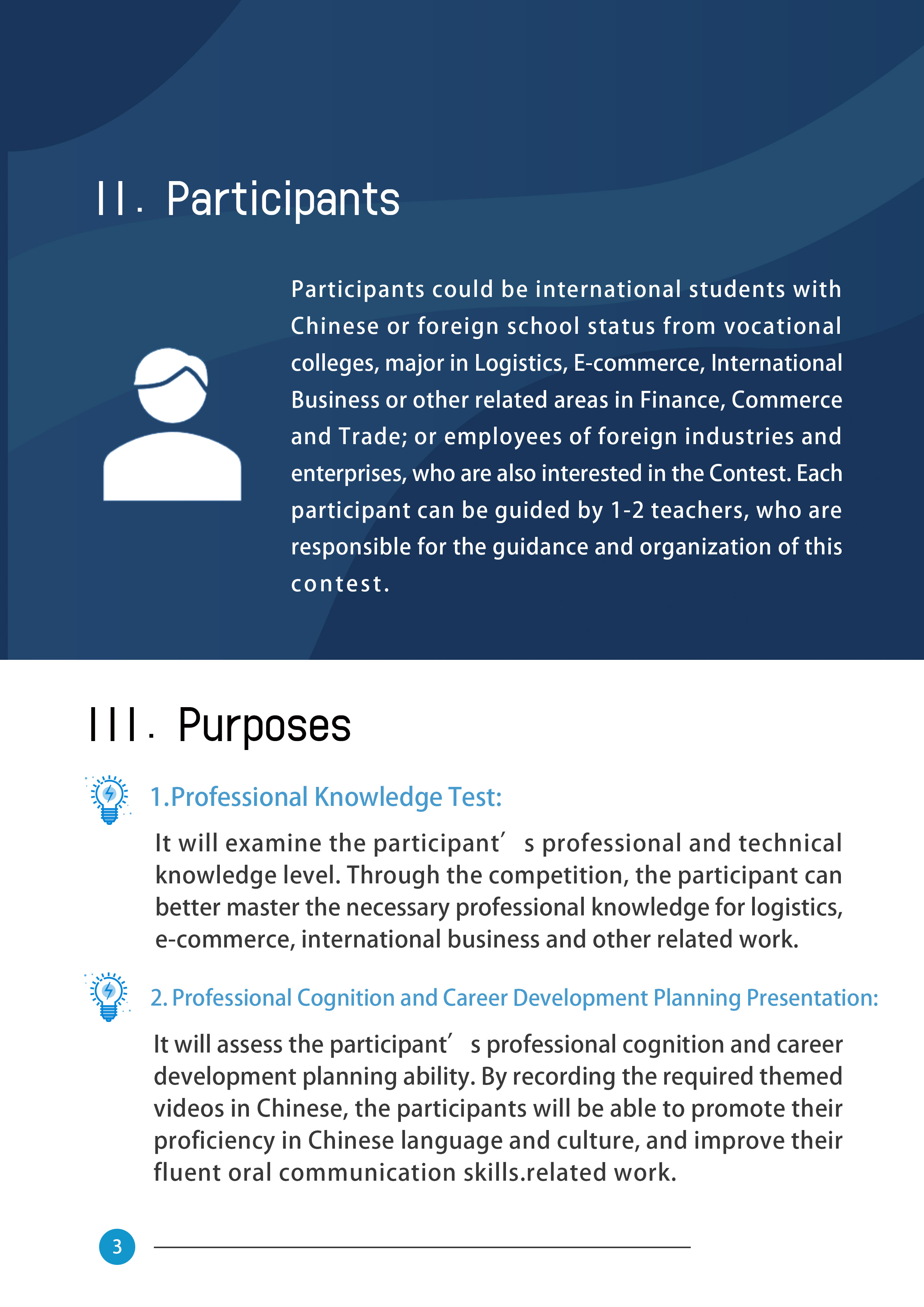 In order to thoroughly implement General Secretary Xi Jinping's important theoretical view on education and follow the spirit of the National Education Conference, push the implementation of the “Several Opinions on Strengthening and Improving Sino-foreign People-to-People Cultural Exchanges issued by the General Office of the CPC Central Committee, the General Office of the State Council” and the “Opinions of the Ministry of Education and Other Eight Departments on Accelerating and Expanding the Opening Up of Education in the New Era”, promote the opening up of vocational education in new age, cultivate high-quality international vocational and technical talents, China Federation of Logistics and Purchasing (hereafter referred to as CFLP ) has decided to hold the "Chinese Language Plus Vocational Skills" International Contest.