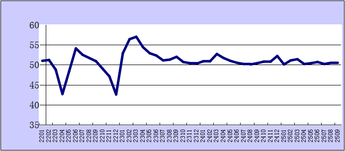 2025年9月份綜合PMI產出指數為50.6%