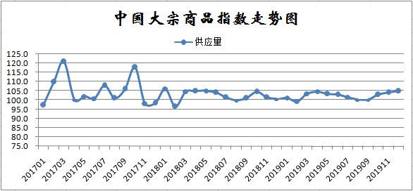 2019年12月份,大宗商品供應指數繼續回升0.7個(ge) 百分點至104.9%,創下近兩(liang) 年來新高,顯示國內(nei) 大宗商品市場供應量持續增加,供應壓力進一步加大。從(cong) 各主要商品來看,除成品油外,其餘(yu) 品種均呈現增加態勢,從(cong) 生產(chan) 企業(ye) 的情況來看,由於(yu) 環保限產(chan) 政策較為(wei) 寬鬆,加上節前存在補庫需求,產(chan) 品生產(chan) 相對穩定,導致商品供應量持續增加。