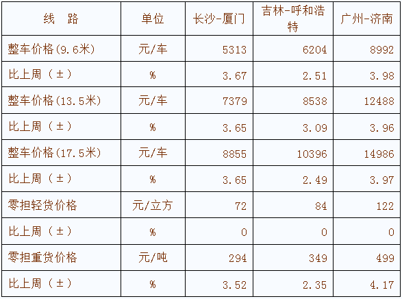 表1 本周部分線路平均價(jia) 格及環比情況對比