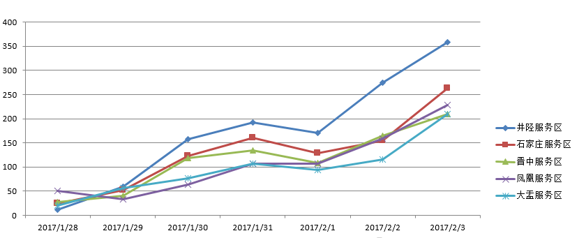 最後來關注春節期間重載貨車停靠數量TOP5服務區情況。正月初一至初七,重載貨車停靠數量TOP5服務區分別為:井陘服務區、石家莊服務區、晉中服務區、鳳凰服務區、大盂服務區;正月初八至十五,重載貨車停靠數量TOP5服務區分別為:萬家服務區、嵊州服務區、曹莊服務區、孝感服務區、鳳凰服務區。