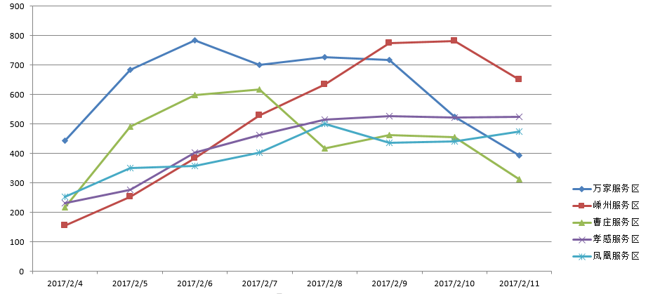 正月初一至初七重載貨車停靠數量TOP5服務區
