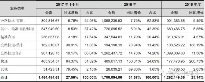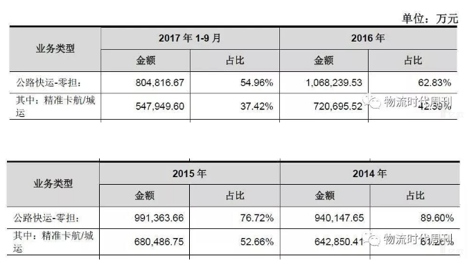 作為德邦快運業務中起價和單價較高的精準卡航、城運業務,其在公司業務結構中的占比較高。報告期內精準卡航、城運的收入占零擔業務比例分別達到 68.38%、68.64%和 67.48%和68.08%(2014年、2015年、2016年、2017年(1-9月));貨量占零擔業務比例分別為 63.09%、60.81%、58.50%、59.26%(2014年、2015年、2016年、2017年(1-9月))。