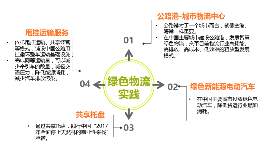 在中國主要城市投放綠色電動汽車,降低貨運行業(ye) 燃油消耗;2018-2022年每年增加20000台,每年減少碳排放28.4萬(wan) 噸;