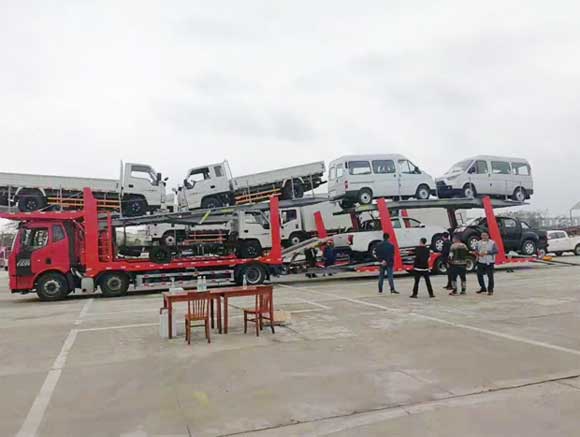 2018年7月1日起,全麵禁止不合規轎運車通行。對合規轎運車,凡裝載符合要求的,即:平頭鉸接列車裝載6輛及以下,長頭鉸接列車裝載7輛及以下,中置軸轎運車裝載8輛及以下,且裝載長度、寬度未超過轎運車外廓尺寸限值的,暫不對超高進行處罰。裝載數量超過上述數值的,將依據《道路交通安全法》、《道路交通安全法實施條例》相關(guan) 規定進行處理。
