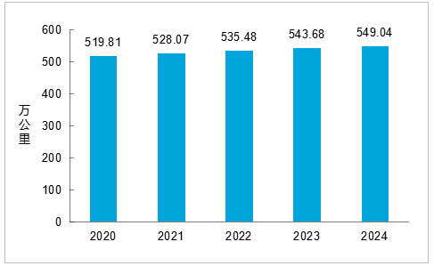 圖1 2020-2024年年末全國鐵路營業(ye) 裏程