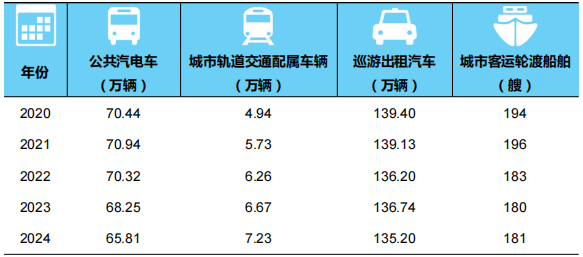 表5 2020-2024年年末全國城市客運裝備擁有量