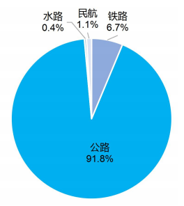 圖5 2024年營業(ye) 性貨運量構成(按運輸方式分)